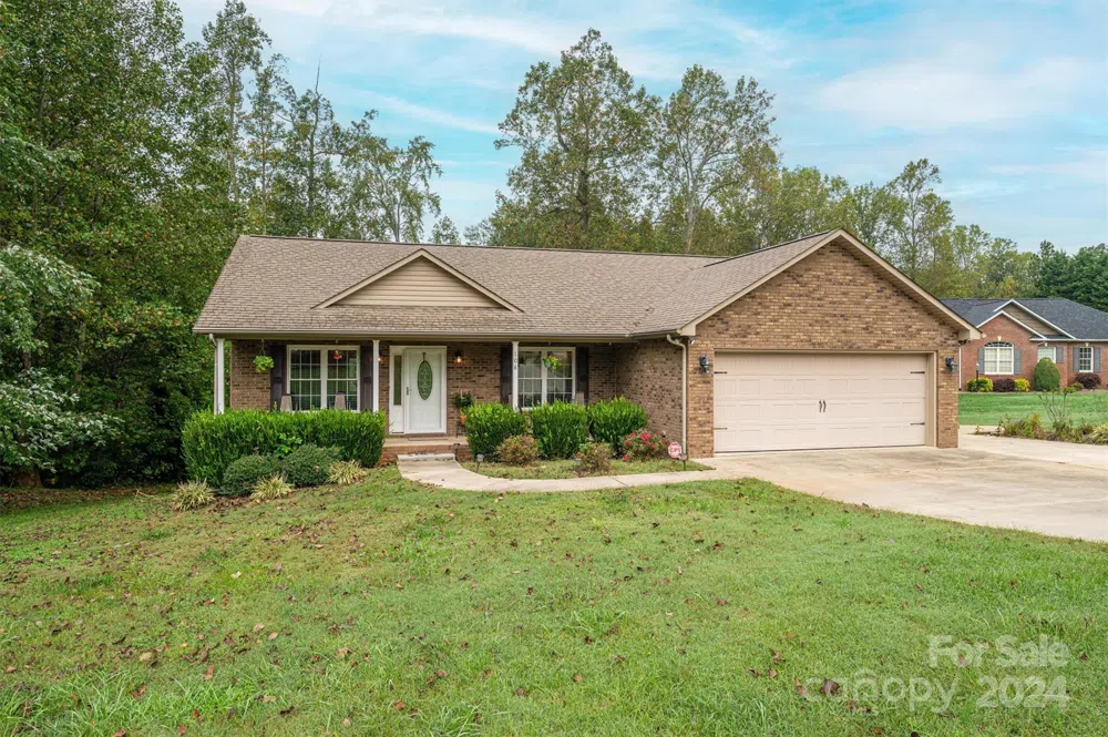 This is a great home with full basement located in Maiden. Home has a covered front porch for sitting and relaxing. Walk inside to an open floor plan with vaulted ceilings and sliding back doors that lead out onto a deck. Home has wood floors in main living area and a kitchen with a breakfast bar, custom cabinetry, and stainless appliances. Laundry closet is in the hall conveniently located next to the primary bedroom. Primary bedroom has walk in closet, and full bath with separate tub and shower and dual sinks. Basement has a rustic looking bonus room of 811 sq ft with a door to the back yard and half bath. The rest of the basement is unfinished for storage and has a garage door that leads outside which makes for a perfect workshop area. Property has a drainage ditch in the back yard. Seller is currently getting quotes and will fix this. If you would like small town living, come and see this one!