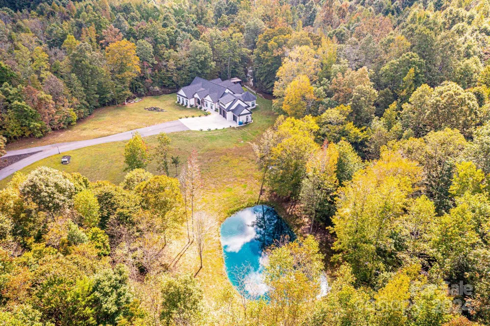 Remarkable ranch nestled in the center of 14+ acres with a gated driveway. Two small clear creeks ripple in the background while your pond is a short stroll away. Birds sing, fish jump and the fawns frolic outside the windows. Large patio and gazebo offer scenic views (creeks, forest, nature). Also a patio area and firepit rest near your fishing pond, read or meditate. Wooded privacy is abundant while a friendly neighborhood is nearby for visitors, if you choose. This executive estate boasts beautiful LVP flooring and porcelain tiles, multiple primary bedrooms, walk-in showers, electric fireplace, oversized windows to enrich natural lighting while admiring nature.