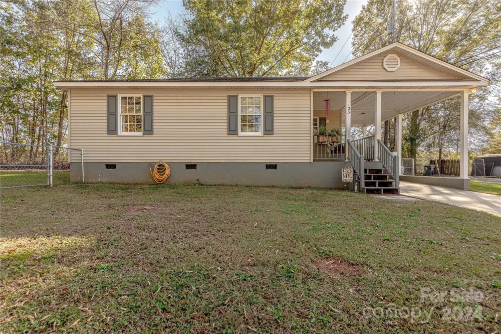 Welcome home to this wonderfully updated ranch, conveniently located in historic Kings Mountain. The rocking chair covered front porch welcomes guests to the natural light filled interior. A spacious great room with beautiful shiplap accent wall is ideal for relaxation or entertainment. The chefs kitchen features refinished white cabinets and granite counters. Two generously sized bedrooms can accommodate a variety of furniture configurations, including a king size bed. The updated bathroom has a single vanity with granite counter. Venturing outside a spacious flat fenced side yard is perfect for play & entertaining and a cozy soaking pool. Conveniently located near the casino, shopping, dining and entertainment with easy access to the highway.