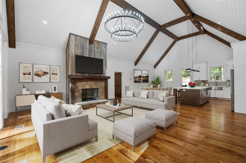 Step inside your dream home in the Glenville neighborhood of Sims Valley! This practically new, 3-bedroom residence has been beautifully renovated from top to bottom providing unbelievable value for this price point. Experience modern living at its finest with this exquisite new kitchen featuring stainless steel appliances, custom cabinetry, and elegant quartz countertops—perfect for culinary enthusiasts and entertaining guests. The open-concept layout floods the main living area with natural light, creating a warm and inviting atmosphere. This easy, one-level home is not just stylish but also functional, making it perfect for families or anyone looking for a comfortable and accessible living space. Step outside to embrace the beauty of over 2 acres of private outdoor space! Enjoy direct access to community trails and amenities, perfect for hiking, fishing, or leisurely strolls. Unwind by the home's charming stone fire pit, surrounded by tiered seating that invites gatherings with family and friends or head to the community clubhouse and pool for added fun. Only 16 minutes from the Cashiers crossroads and 7 minutes to Happs and The Local, this Sims Valley property offers both modern comfort and a serene outdoor retreat!