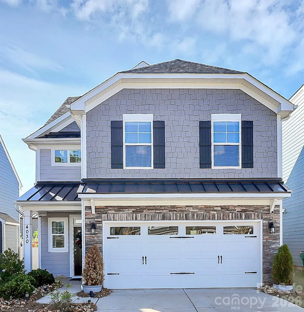 Stunning 2022-built home in the desirable McKee Grove community of Charlotte! This modern two-story traditional residence offers 2,248 square feet of thoughtfully designed living space, perfect for families or entertaining. Open floor plan with four spacious bedrooms, 3.5 bathrooms, and extensive luxury vinyl plank (LVP) flooring throughout the main areas. The gourmet kitchen is a chef’s dream, featuring a gas range, sleek quartz countertops, a stylish tiled backsplash, stainless steel appliances, and ample cabinetry for all your storage needs. The adjacent living area boasts a cozy stone fireplace, ideal for gathering on cool evenings. Upstairs, the bedrooms offer comfort and privacy, with composite stairwell treads that add a touch of durability and elegance. Outside, enjoy a covered entryway and a paver patio for al fresco dining or relaxation. The home sits on a 3,528 sq ft lot with a gentle downslope in the rear yard. A two-car attached garage with coated flooring and a concrete driveway provides convenient parking for four cars. Located in a suburban neighborhood with easy access to Pineville Matthews Road, Weddington Road, and Providence Road, you’re minutes from top-rated schools, shopping, parks, and recreational facilities. This like-new home combines quality construction (cement board and stone exterior, asphalt shingle roof, aluminum windows) with energy-efficient features, including gas heating, a tankless water heater, and central air. Perfect LOCATION. 30 minutes to the airport and Center City Charlotte; Ballantyne Bowl Entertainment complex is 10 minutes. Relocating from New York to California, or anywhere in the USA, this is a must-see home.
