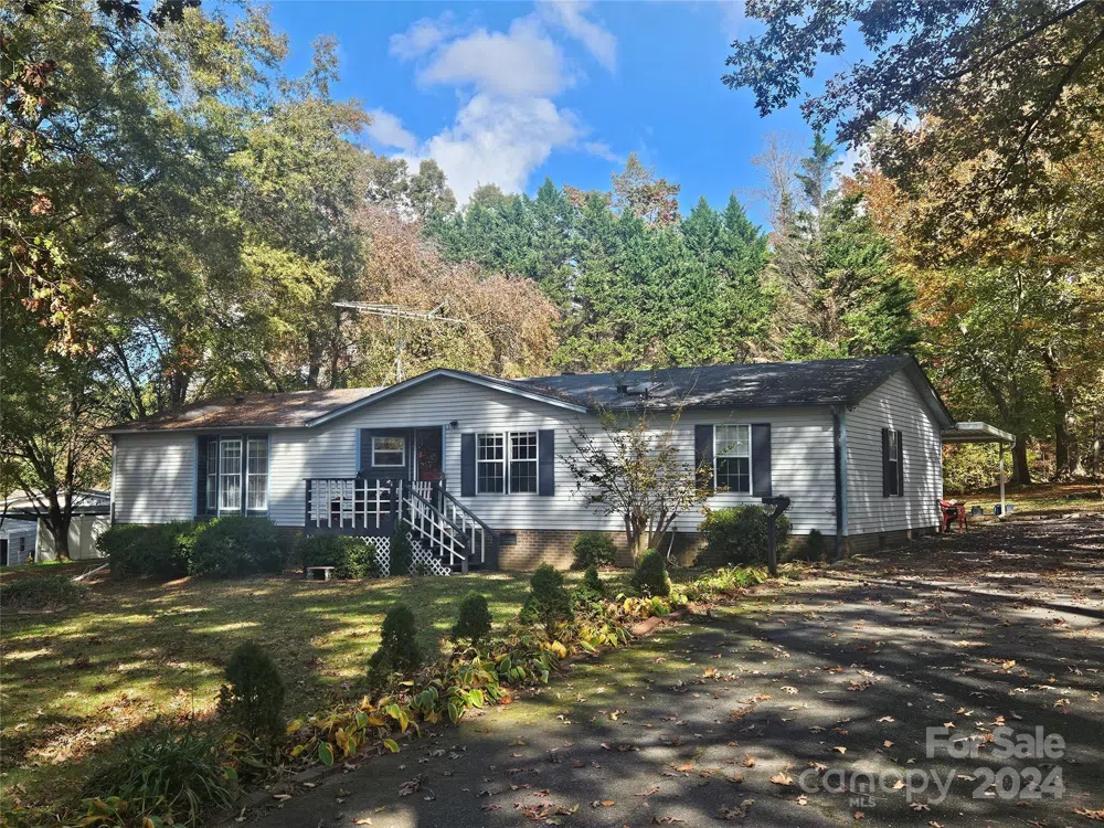 Beautiful setting! 1.46 wooded acres with a 3 bedroom/2 bath home (1786 ht.sq.ft.) that also has 3 outbuildings. One of the outbuildings has water and electricity. The rooms are so spacious! As are all the closets! Storage is more than ample! As far as outdoor spaces - there is a deck that is enclosed for privacy and also a concrete patio. Covered parking for one car. The location is excellent - not far from town but outside the city limits. You won't find this much square footage at this price. Come take a look!