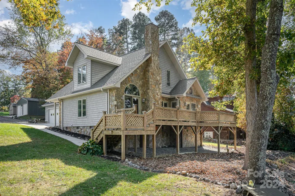 Waterfront paradise! See this lakefront property with abundant natural light, sweeping lake views, and a spacious deck that's perfect for relaxing or entertaining. Enjoy panoramic lake views from every angle of this open floor plan home. A beautiful rock fireplace with gas logs is the center piece of the living room. The primary bedroom located on the main floor allows ease and accessibility. The upstairs features a bedroom along with a versatile flex room, perfect for an office, guest space, or additional bedroom. For the water enthusiast, this property boasts a private pier with floating dock and a convenient boat ramp. There is plenty of space for vehicles and toys with a detached 2-car garage featuring upstairs storage space, an additional 2-car garage, a carport, and a storage shed. A water filtration/treatment system and generator offer peace of mind. All set on a generously sized lot. See this home - lake living at it's finest.